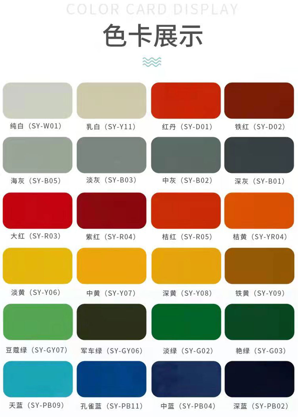 *如果下列色卡中没有,可以从国际通行的劳尔色卡中选择,报颜色号码即可定制。