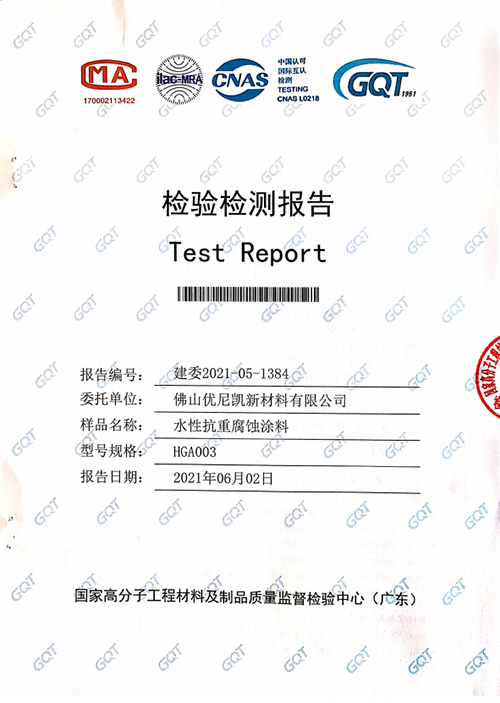 抗重腐蚀涂料领用,因其恶劣的使用环境,很少有企业加大研发投入,因此也缺少对应的国标、行标。为了能打造行业标准,优尼凯在抗重腐蚀涂料领域重金投入,经过不断完善,专门申请了企业标准,对标的检测报告也出来了,有项目欢迎采用!