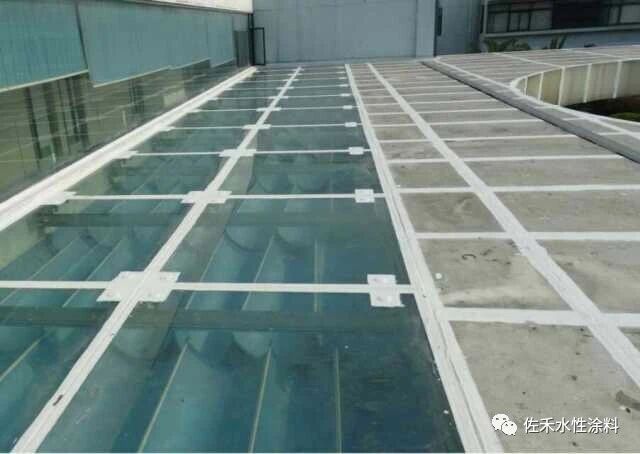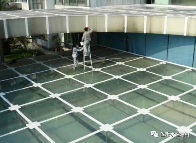 建筑玻璃顶棚(屋顶)现在比较常见,玻璃顶棚是由小块的钢化玻璃(或PC阳光板)固定拼接而成,拼接缝用玻璃胶填充密封。一两年之后,部分玻璃胶开始老化收缩,进而出现裂缝,导致下雨天出现渗漏。解决方案之一:采用源自北美的高弹丙烯酸屋面防水涂料。